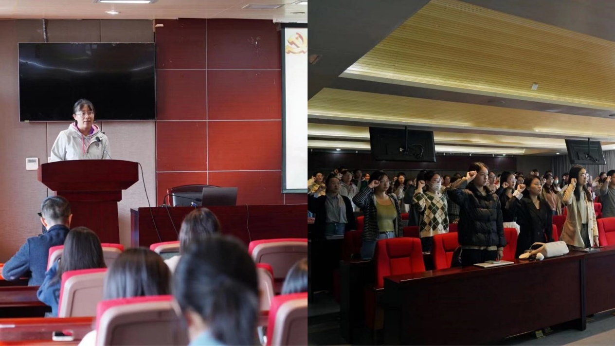 全体同学的倡议书,倡议书强调青年党员应该立大志、明大德、成大才、担大任,把论文写在祖国大地上。随后,在新生党员代表硕士生李沅洁领誓下,全体党员重温入党誓词,立志永葆党性、矢志担当。