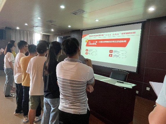 此前,初赛已通过线上答题形式顺利完成,自5月28日启动以来,共有238名师生积极参赛,评选出个人“优胜奖”21名和个人“优秀奖”59名。本次党史知识竞赛题目涵盖了党史、新中国史、改革开放史、社会主义发展史以及习近平总书记重要论述的内容,设置了必答题、抢答题、论述题三个环节。参赛选手以党支部为单位组建参赛团队,6个支部代表队参与决赛。