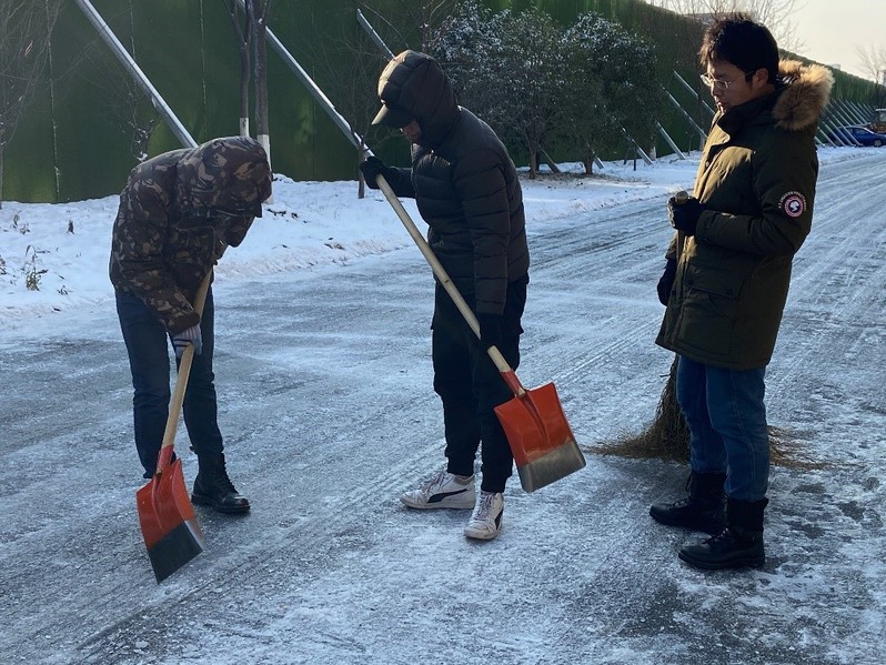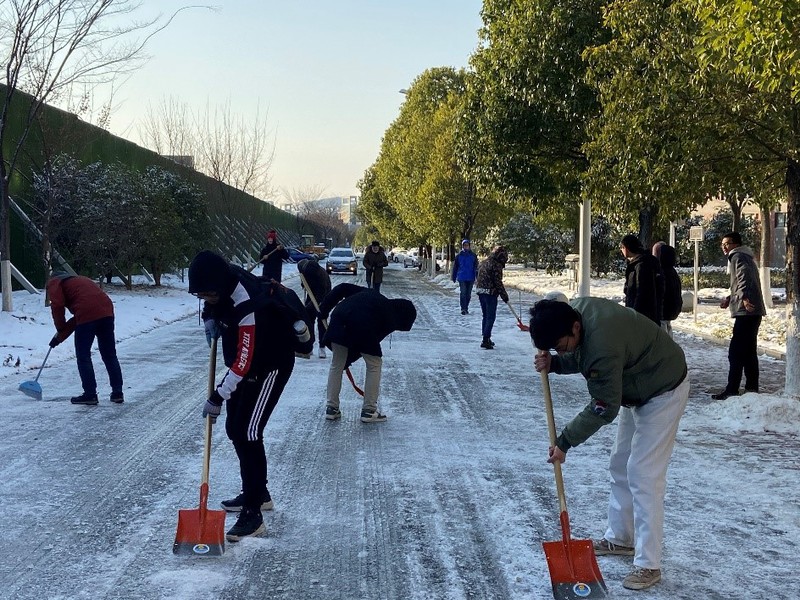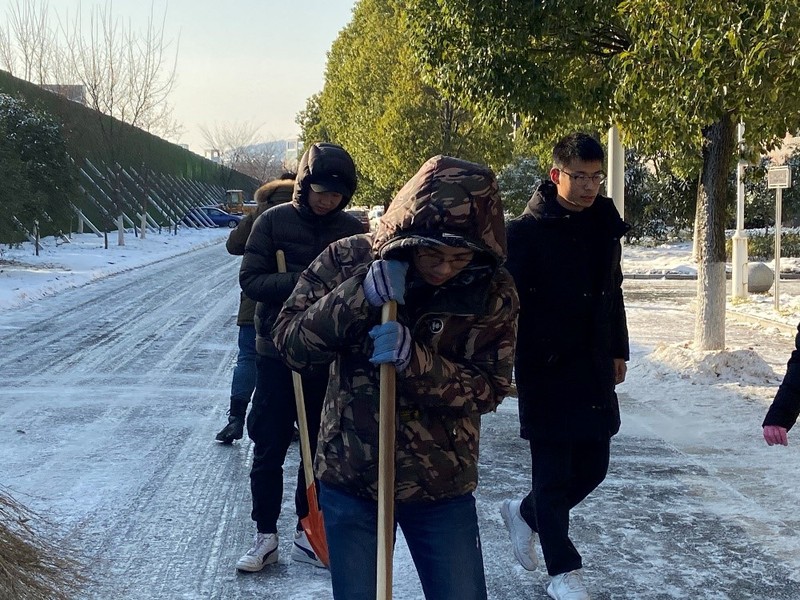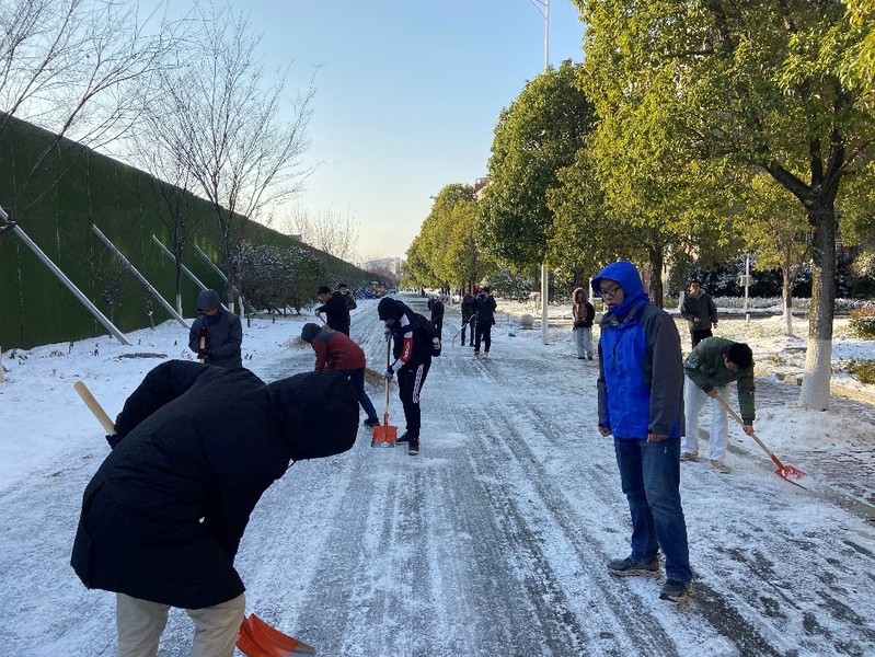 李高杰老师带领下,一大早便开始了一场扫雪除冰活动,为我校师生共建安全畅通出行环境。