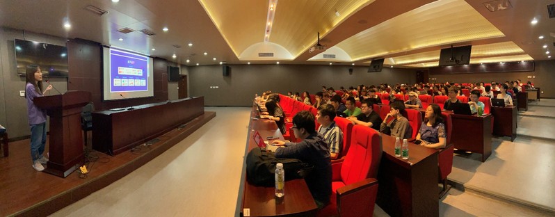晚上,在学院A410报告厅,罗书记作讲座开场致辞,感谢三位嘉宾在下午的模拟面试中对参试同学们的指导。
