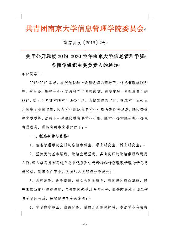 关于公开选拔2019-2020学年禁闻网 各团学组织主要负责人的通知