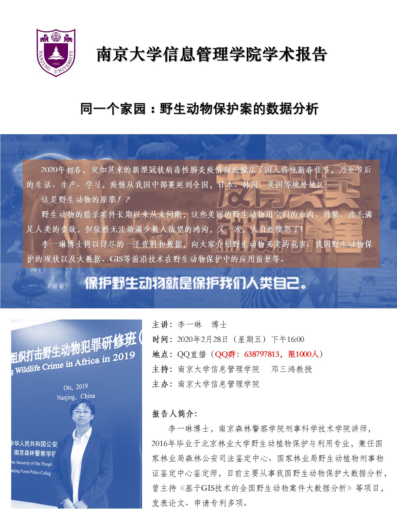 全体教师在学校的统一部署下,迅速展开了“停课不停教,停课不停学”的各项活动。2020年2月28日下午4点,本学期首次校海**家家讲座“同一个家园:野生动物保护案的数据分析”通过QQ直播顺利进行。