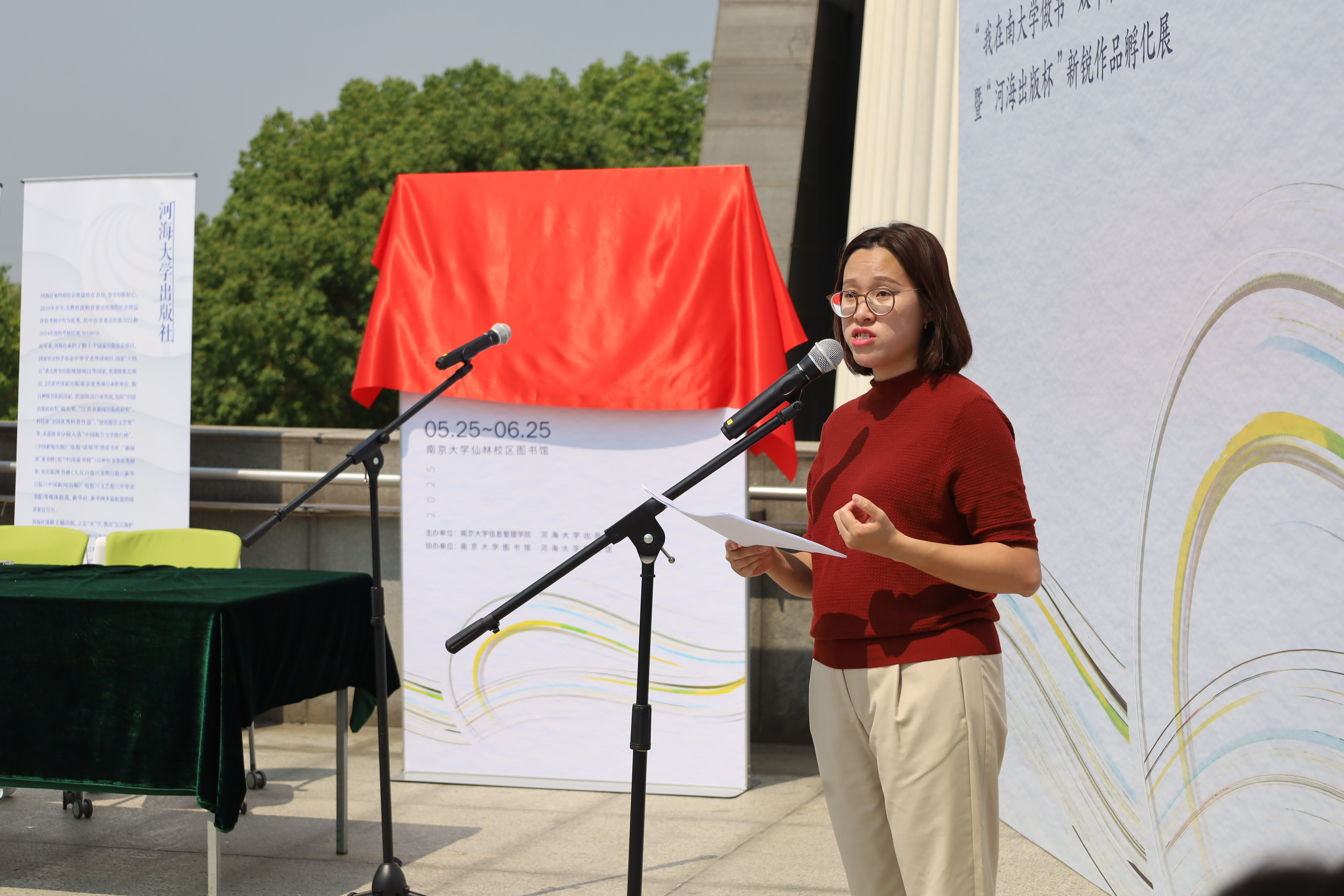 展览伊始,河海大学出版社副社长谢业保殷切致辞,他指出,大学生群体是文化传承与创新的重要力量,这与河海社致力于传播优秀文化、推动知识进步的使命高度契合。基于此,河海大学出版社愿与诸位学子携手,以匠心为斧、以热忱为钉,共同打造遨游于知识之海的方舟。