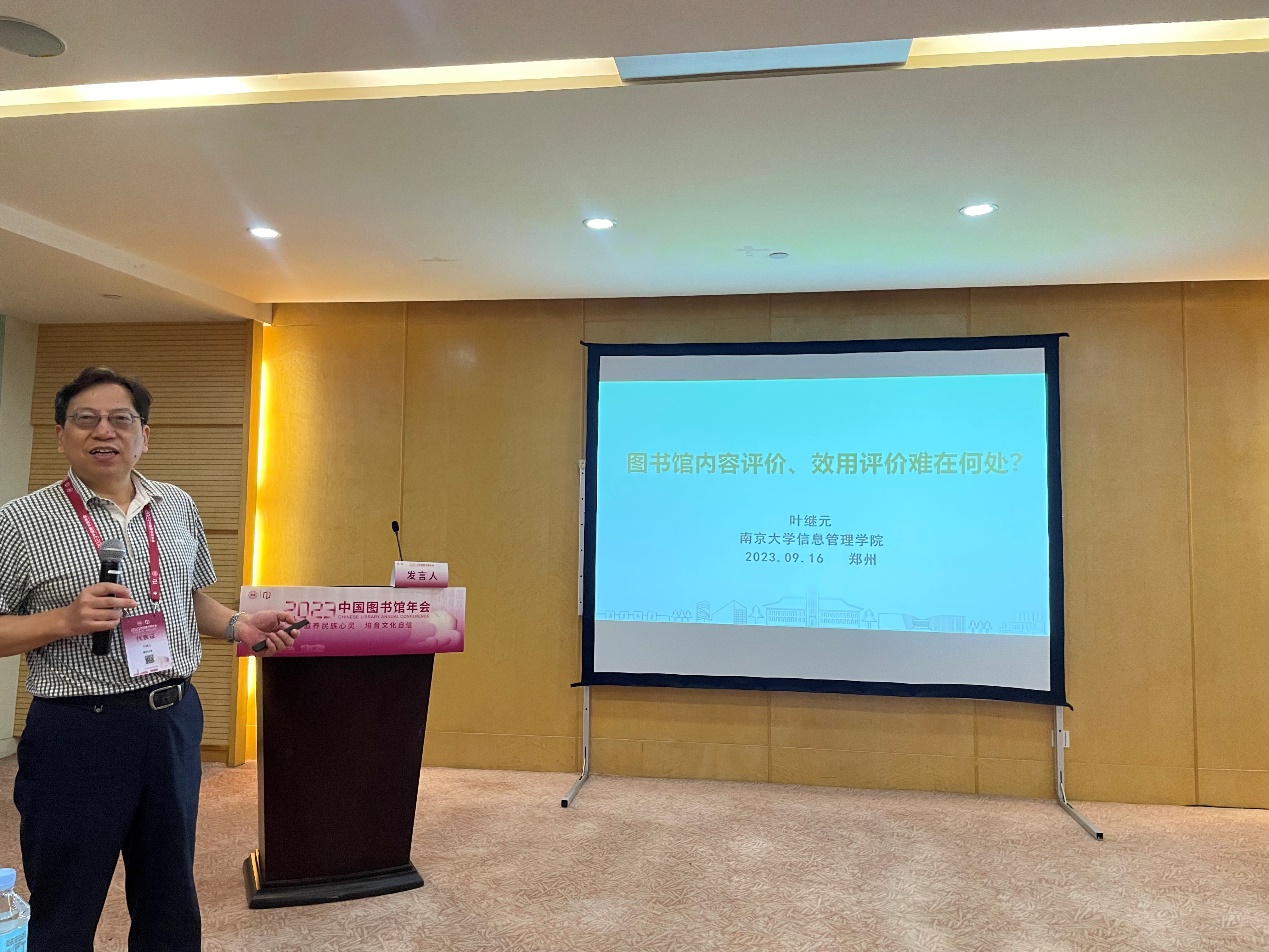 教师成颖教授、欧石燕教授、陈铭副教授作为中国图书馆学会图书馆统计与评价专业组的委员,参加了本次年会活动。