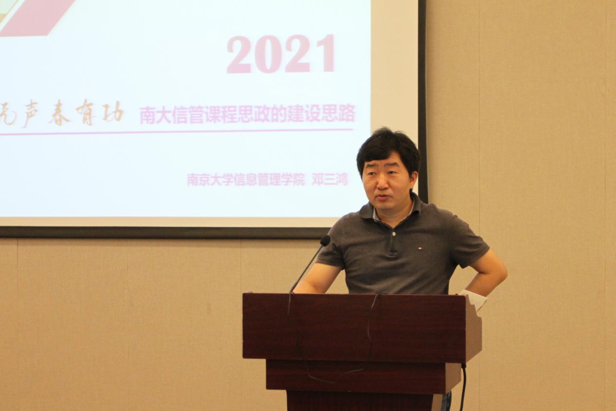 副院长邓三鸿教授作了题为《润物无声春有功——南大信管课程思政的建设思路》的报告,指出如今专业教育与思想政治教育存在“两张皮”的问题,并据此向与会代表介绍以课程育人功能为核心的“南大方案”,特别是南大信管的“熔炉工程”,提倡课程思政多元化。北京大学信息管理系副系主任张鹏翼教授作了题为《融思政入课程,育专业之贤才——北京大学信息管理系课程思政的探索与实践》的报告,阐述北大课程思政特色及信息管理系思政建设方案,并以北大两门课程进行具体案例分析,倡导以点带面、因地制宜的思政课程建设路径。
