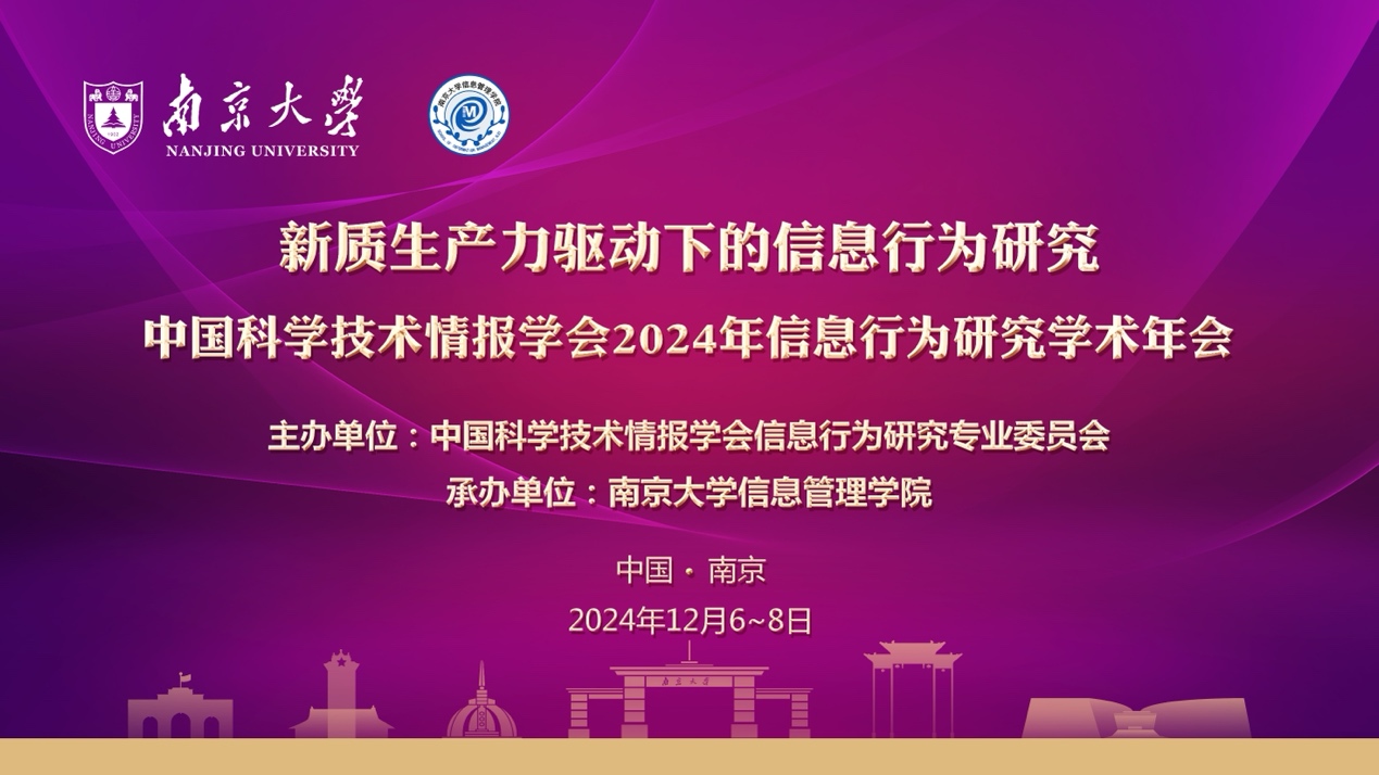 2024年12月6日至8日,2024年信息行为研究学术年会在南京顺利举办。本次会议的主办单位为中国科学技术情报学会信息行为研究专业委员会,承办单位为禁闻网