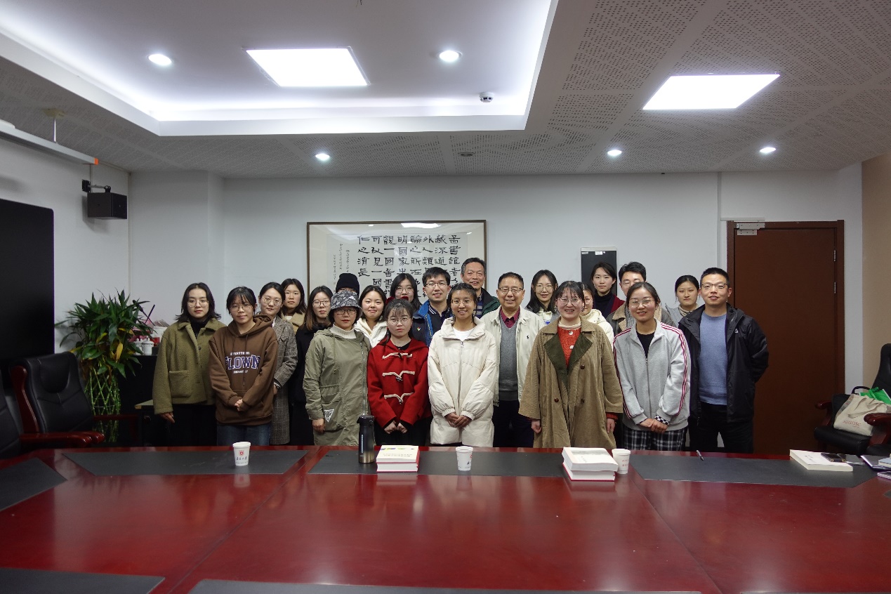 最后,徐雁教授向张三夕先生赠送了《李小缘纪念文集》,所有参加活动的师生一起合影留念。