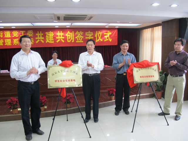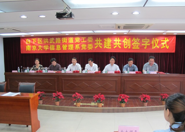为加强地方党组织与大学党组织的联系,实现资源共享、共同发展,开创街道党工委与大学党组织携手创先争优的新路子,信息管理系党委与洪武路街道党工委达成了此项共建共创协议。
