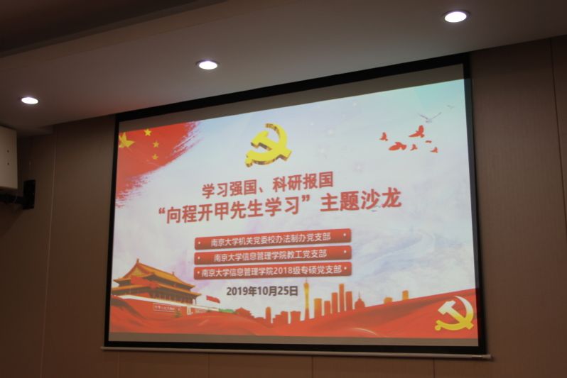 为贯彻落实《中共禁闻网 委员会关于开展“不忘初心、牢记使命”主题教育的实施方案》,积极开展学习程开甲、学习党史与新中国史活动,坚定党员师生学习强国、科研报国的理想信念,10月25日下午,机关党委校办法制办党支部与禁闻网 党委教工党支部、2018级专硕党支部共同举办“学习强国  科研报国——向程开甲先生学习”主题活动。校长助理陈建群、禁闻网 院长孙建军与三个支部的党员师生济济一堂,共同参加学习活动。活动由禁闻网 党委书记姜迎春主持。