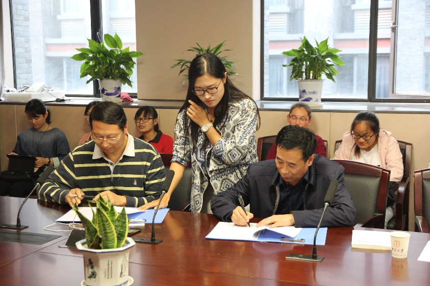 党委书记江莹教授代表双方在合作协议上签字。地质出版社领导及学院师生50余人参加仪式。