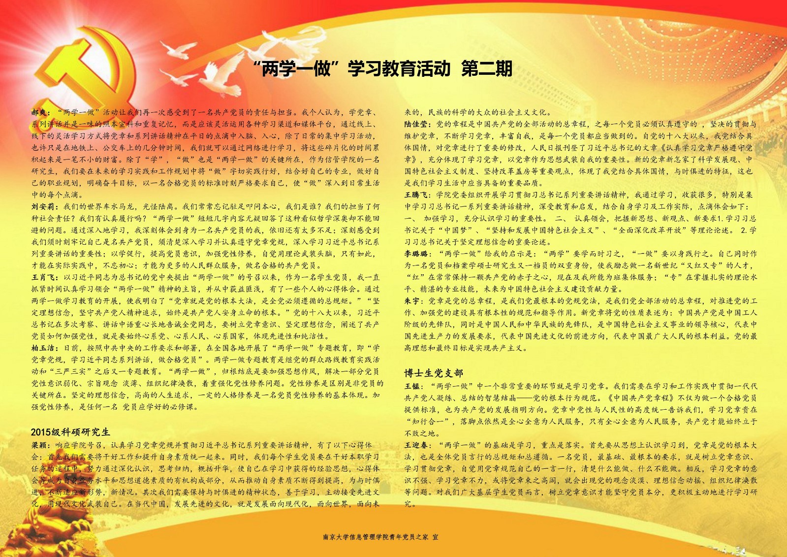 “两学一做”基础在“学”,关键在“做”。“学”与“做”只有进行时,没有完成时,更不存在过去时,学院党委将按照学校党委工作部署,继续深入开展学习教育活动,争取取得更好的党员教育效果。